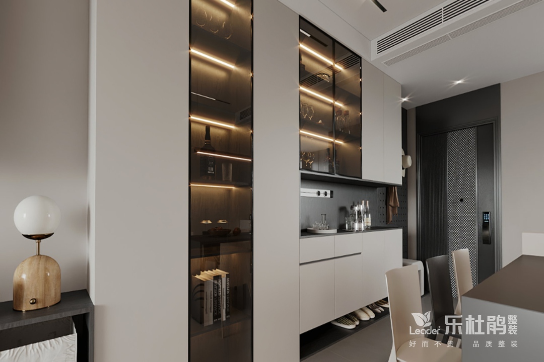 一款餐邊柜等于儲物柜+餐盤(pán)柜+置物臺,收納空間巨大~柜門(mén)奶咖色設計,簡(jiǎn)約大氣,居家有溫馨氛圍,玻璃門(mén)加氛圍燈高級還方便打掃衛生,做免拉手,簡(jiǎn)約高級又大氣,開(kāi)放格和玻璃門(mén)里面擺放一些喜歡的小擺件和生活小家電,氛圍感與實(shí)用感并存,美觀(guān)又不失生活氣息。